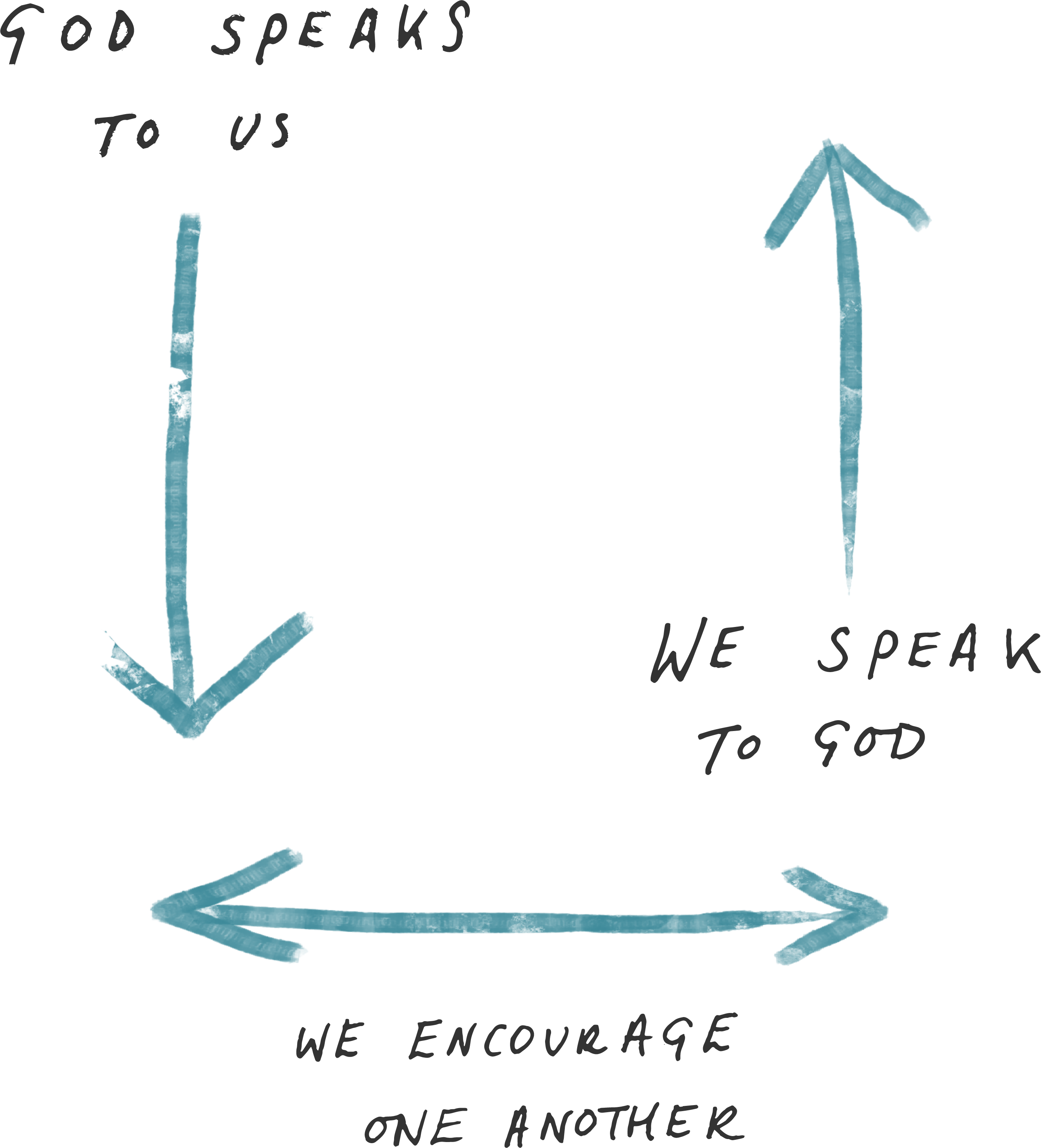Praising God, confessing sin, and seeking God’s help. This might include the Lord’s Prayer.