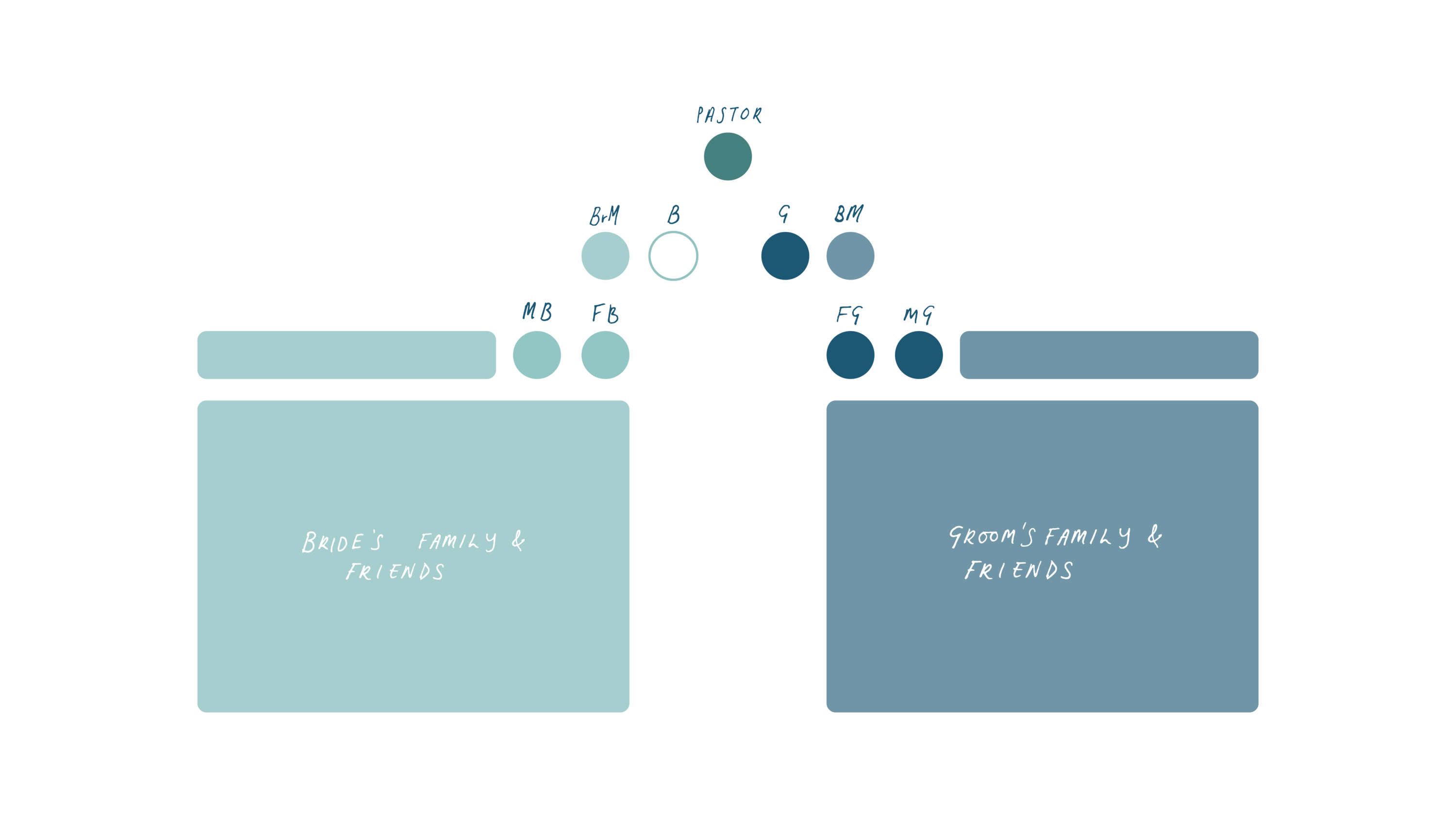 A rehearsal is a useful part of the preparation. It is wise to involve as many of those who have some specific role as possible: the best man, the bridesmaids, the parents etc. This will help to ensure that the service is stage-managed in a way that is appropriate and organised (see below for a diagram of the arrangement of a traditional wedding service).